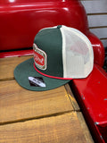 Classic olive green, 5-panel, flat bill, snapback featuring the Red Dirt "Gitty Up" patch and red rope.