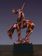 This copper plated resin sculpture depicts an Indian Chief leading his men into battle; his horse rearing up on his hind legs preparing for conflict.