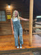 Cowboys and cactus - This western print, twill jumper hits the mark! This fabulous piece features multiple front pockets, adjustable straps, fringed hem detail, and of course, a fun western print on a beautiful blue twill.
