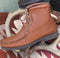 The handcrafted construction and quality of leather make our kneeboots some of the finest to be found! These authentic Knee High Boots use over 12 square feet of high quality tumbled cowhide for extra durability.This full grain cowhide is specially tanned and tumbled to provide flexibility. Between your feet and the ground there are three layers of thick cowhide and a Poron cushion insole between the leather layers. The canoe sole on the outside is thick cowhide leather for added wear. The boots have a gusseted tongue, a fully laced front, and generous calf size. Height is approximately 17". Style 1740 has a plain, fringeless top.These leather-soled Knee High Boots are ideal for outdoor activities on natural surfaces. For more rugged terrain or street use, we recommend our Knee High Boots with rubber soles (Style #1740-CS).Footskins are completely made in the USA of American leathers. Because they are handcrafted with much attention given to detail, you can be assured of the high quality of our footwear.