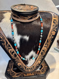 This 24" silver pearl necklace features gorgeous turquoise and coral beads. The combination of colors makes for a truly remarkable piece.
