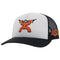 This classic trucker hat features a white embroidered Cowpoke/Mountain range design: