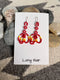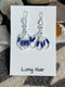 These handbeaded daisy earrings crafted by Cherokee artist Fay Bolin feature royal blue, yellow, orange, and red beads and are set on a sterling silver hook.