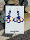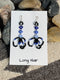 These handbeaded daisy earrings crafted by Cherokee artist Fay Bolin feature red, orange, and yellow beads and are set on a sterling silver hook.