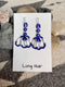 These handbeaded daisy earrings crafted by Cherokee artist Fay Bolin feature black, blue and white beads and are set on a sterling silver hook.